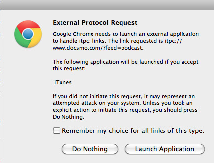 Your browser will attempt to launch iTunes. Click “Launch Application.”